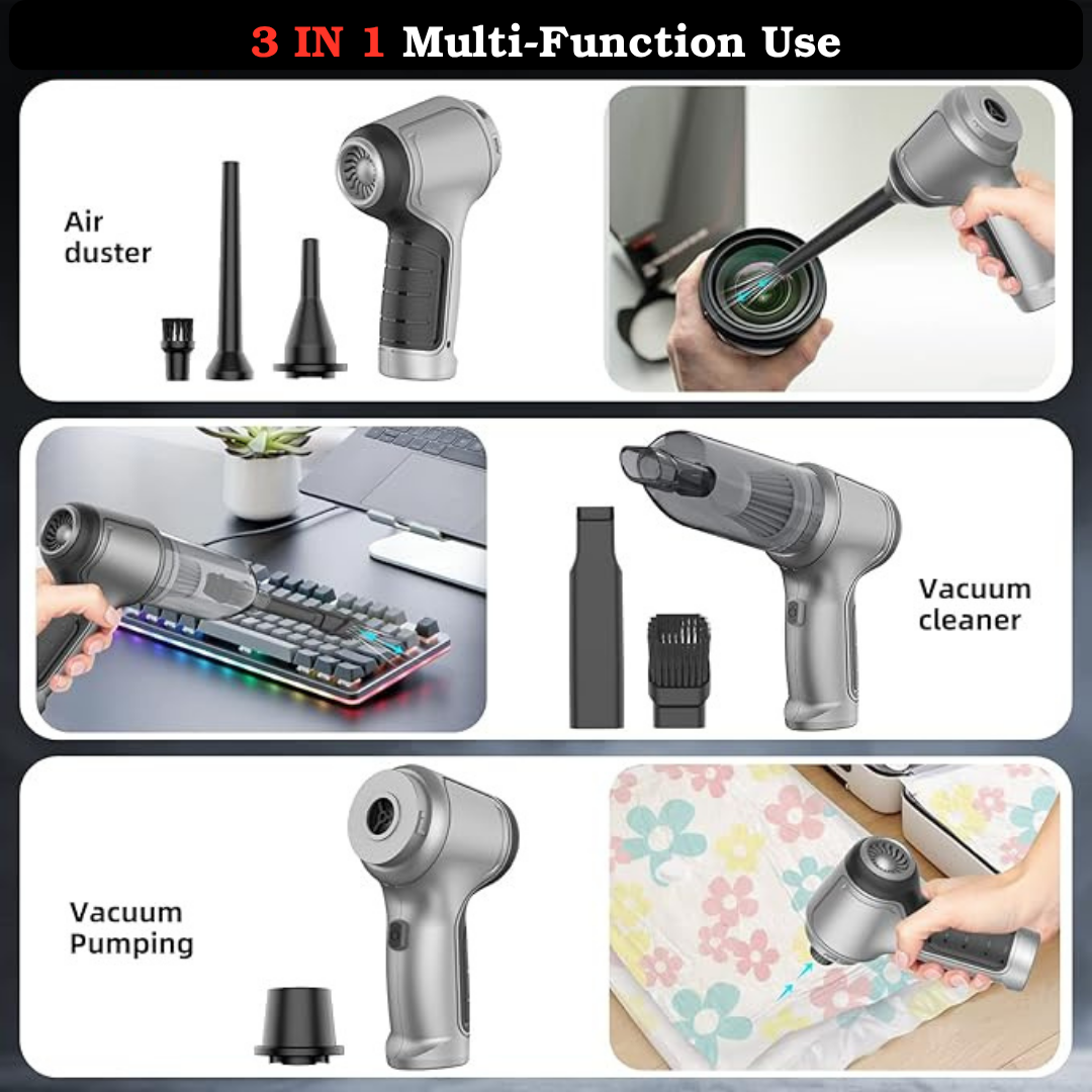 This handheld rechargeable vacuum & blower is designed to make cleaning effortless.